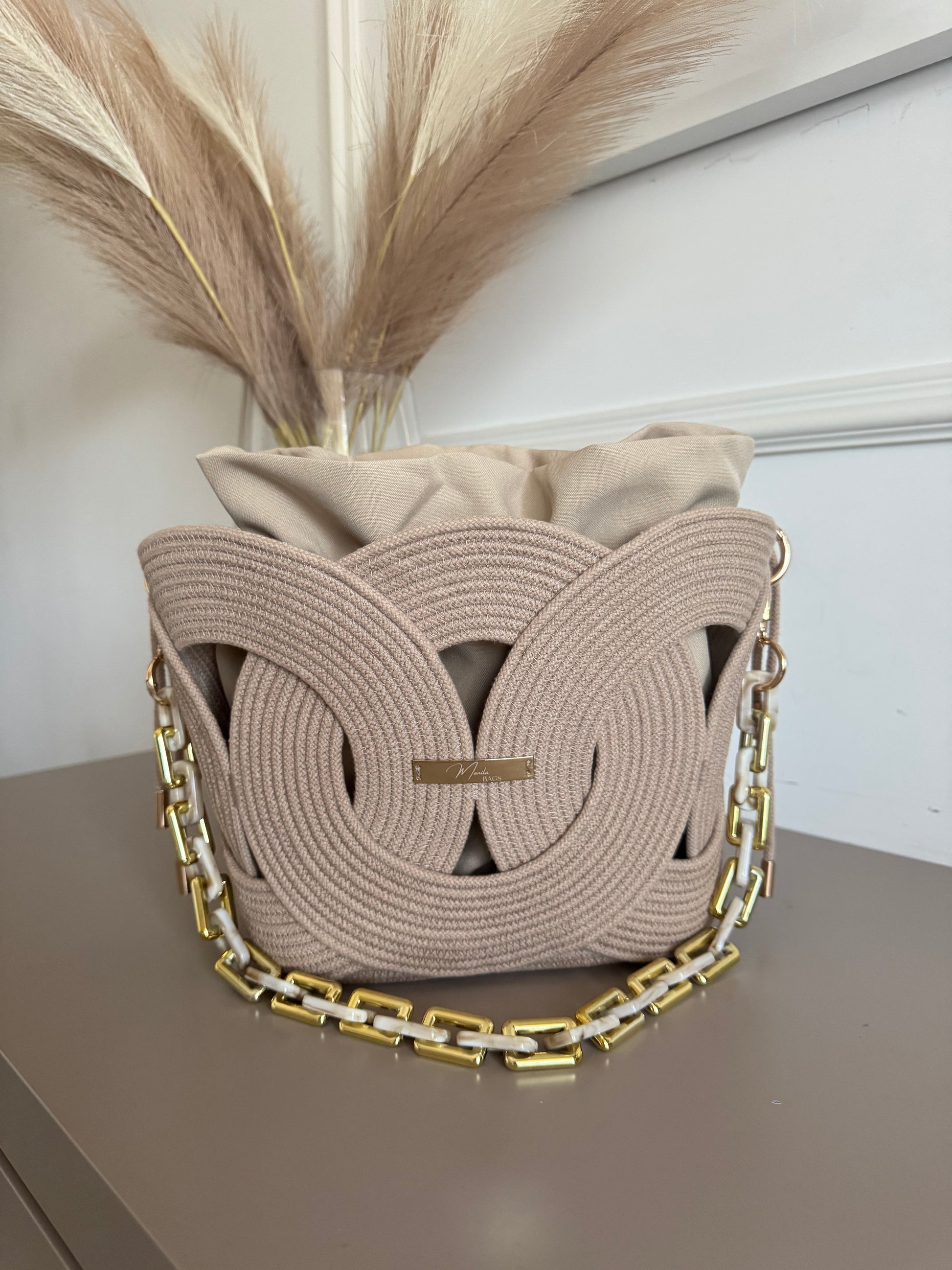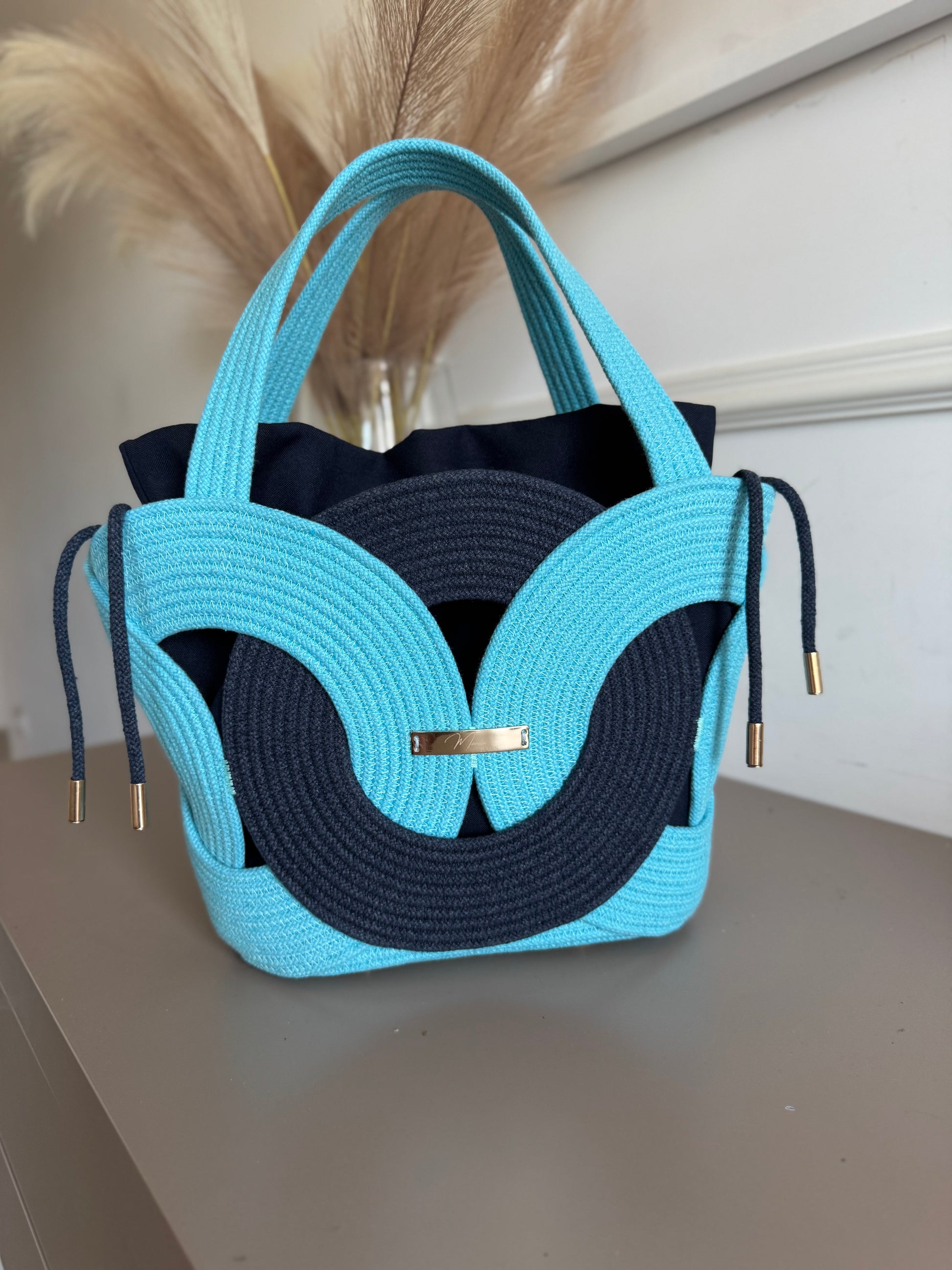 Borsa cestino realizzata a mano in corda di cotone di alta qualità.
