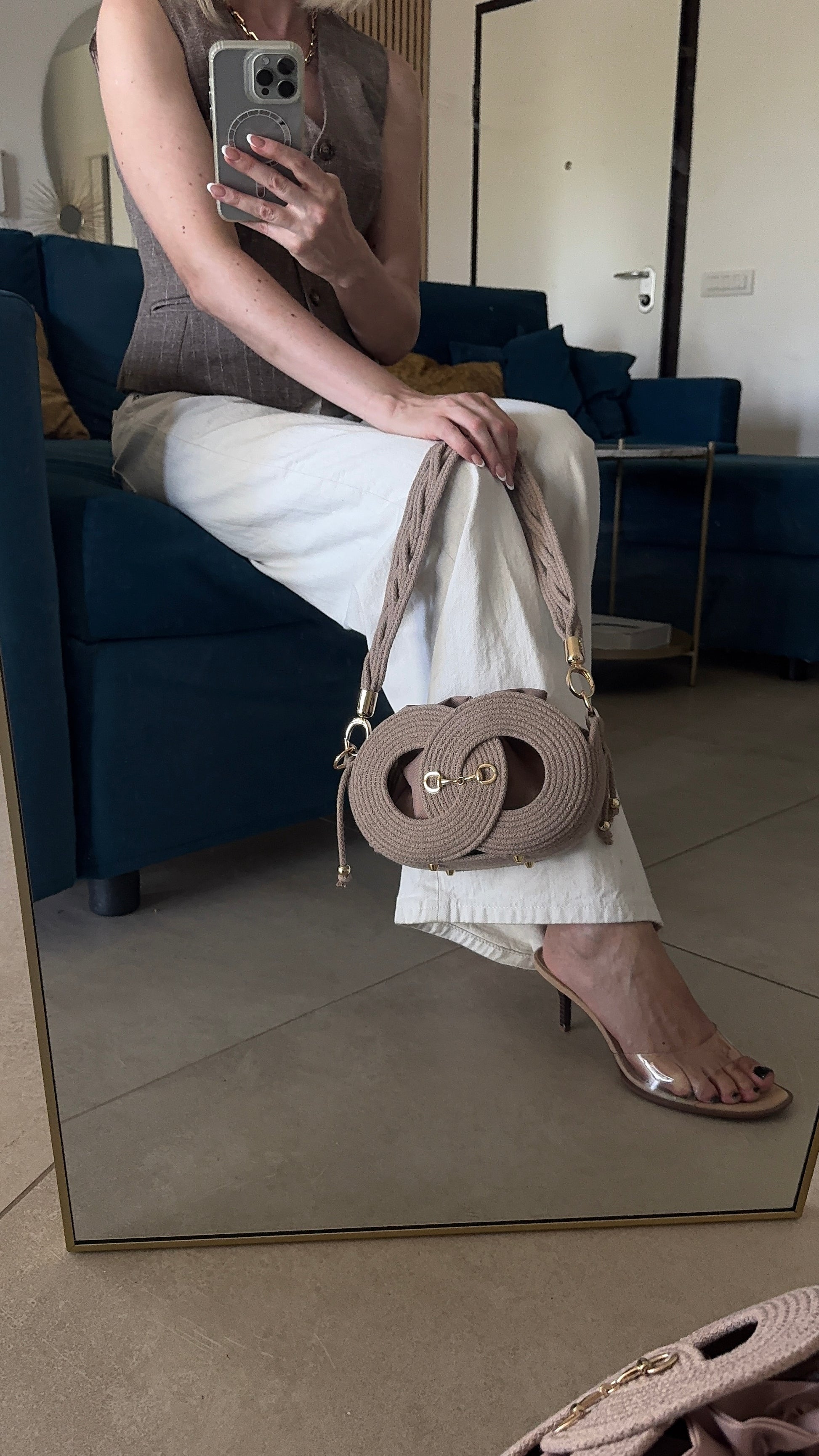 Piccola, compatta e incredibilmente elegante: la Venezia è il modello che unisce charme e funzionalità in un design raffinato. Realizzata con una tracolla corta intrecciata, arricchita da piedini in metallo e un pratico sacchetto interno in tessuto, questa borsa è pensata per chi ama distinguersi con dettagli unici. Perfetta da portare a spalla per un look sofisticato e contemporaneo.