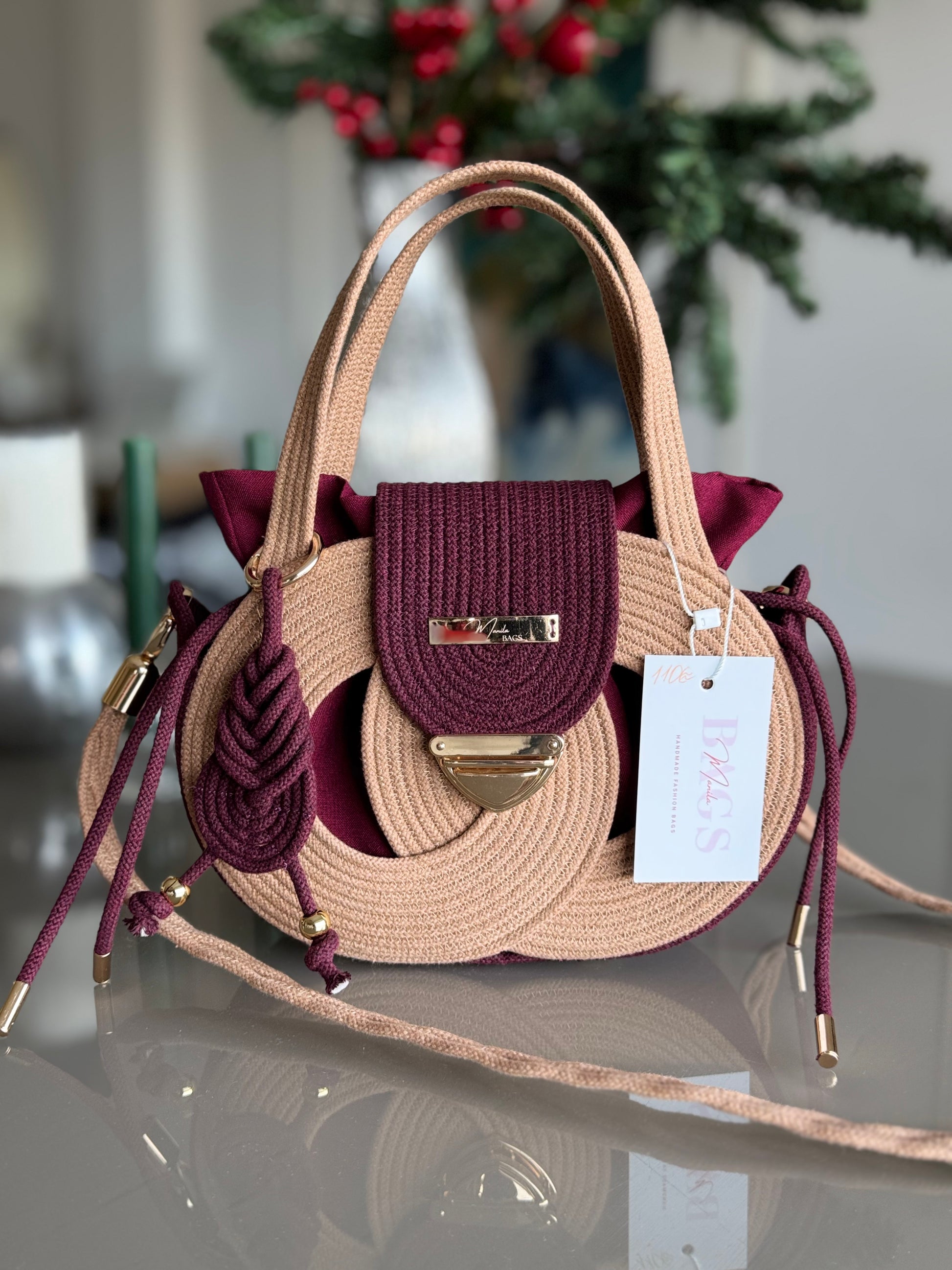 - Manici in corda di cotone e tracolla in corda