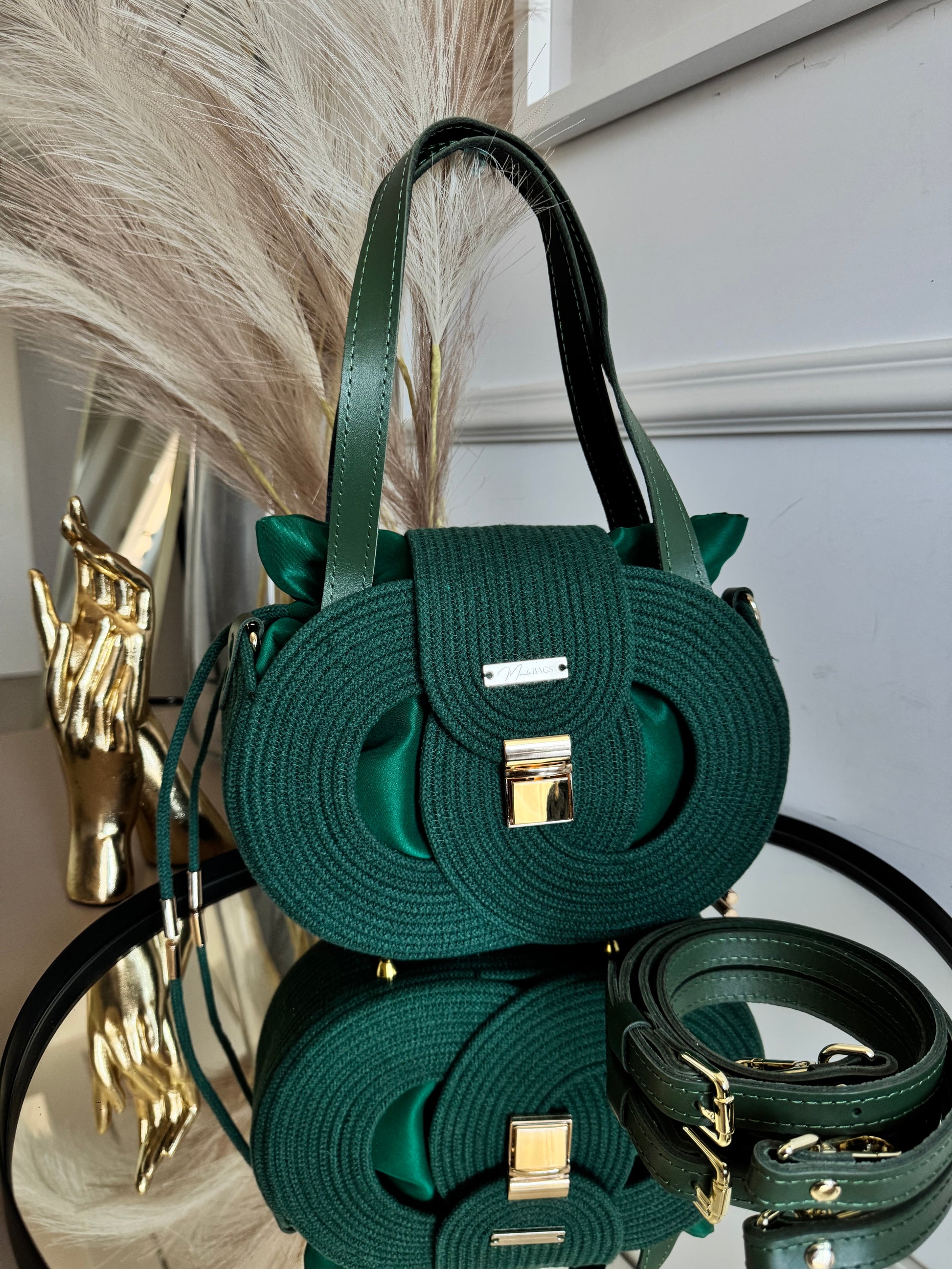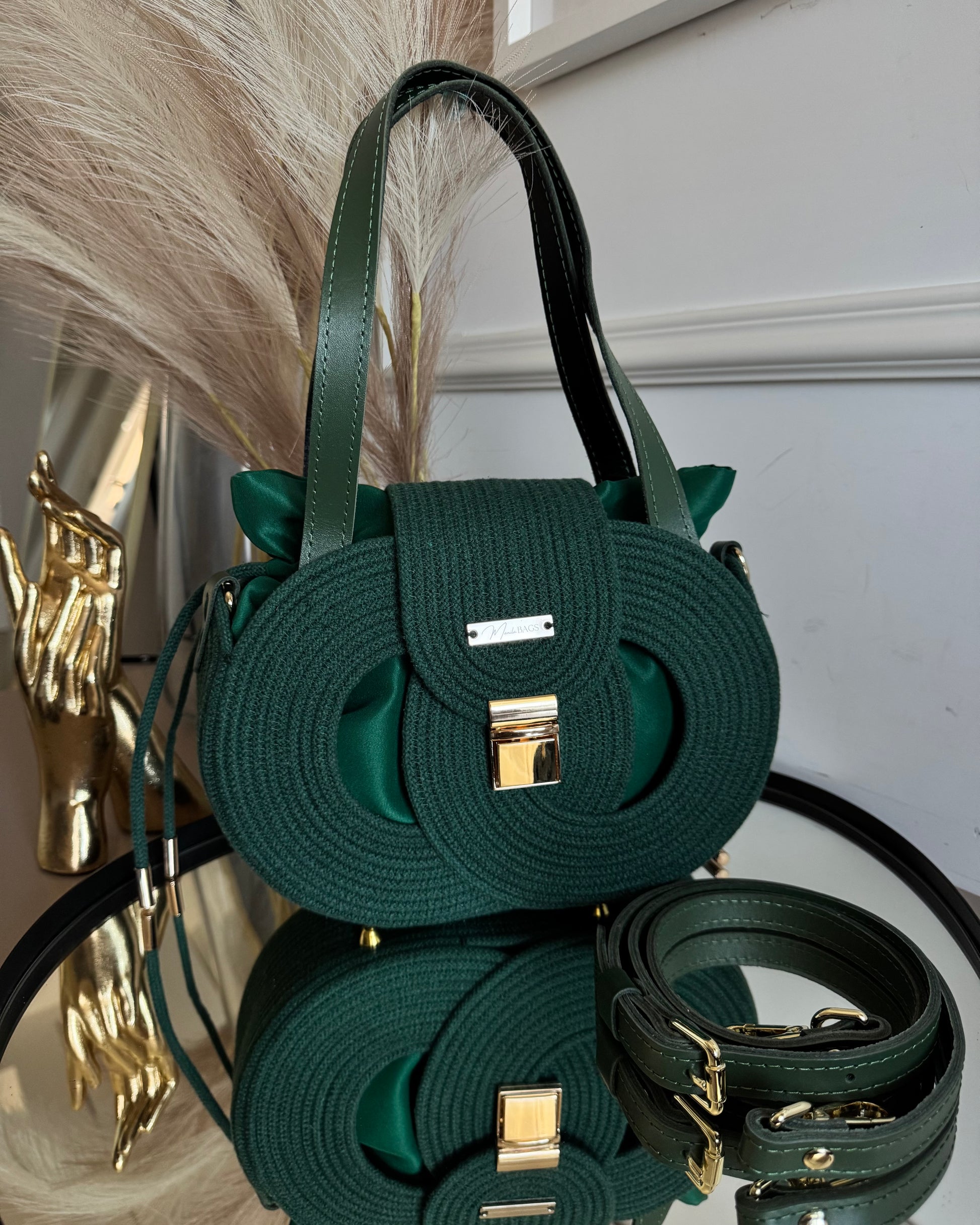 - Misure: altezza 18 cm (senza maniglie), larghezza 29 cm, lunghezza manici 50 cm, cintura 100 cm